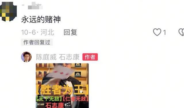 还有很多网友在评论区提到了他之前演的一些角色。 有人说他是永远的“赌神”时。 陈庭威还十分给面子的回复了一张“石志康”的表情包。
